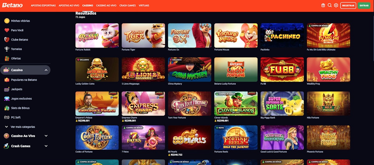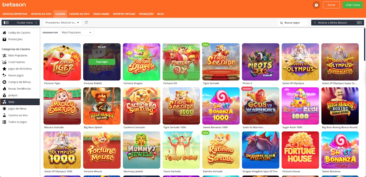 O Fortune Tiger é o jogo mais jogado na Betsson, e se você curte jogos de bichinhos sortudos, vai gostar da seleção de jogos disponíveis, tenho um filtro dedicado exclusivamente para os jogos desse tipo.