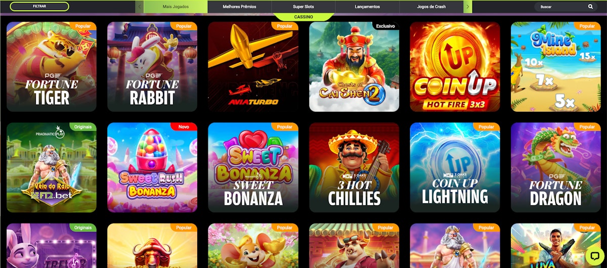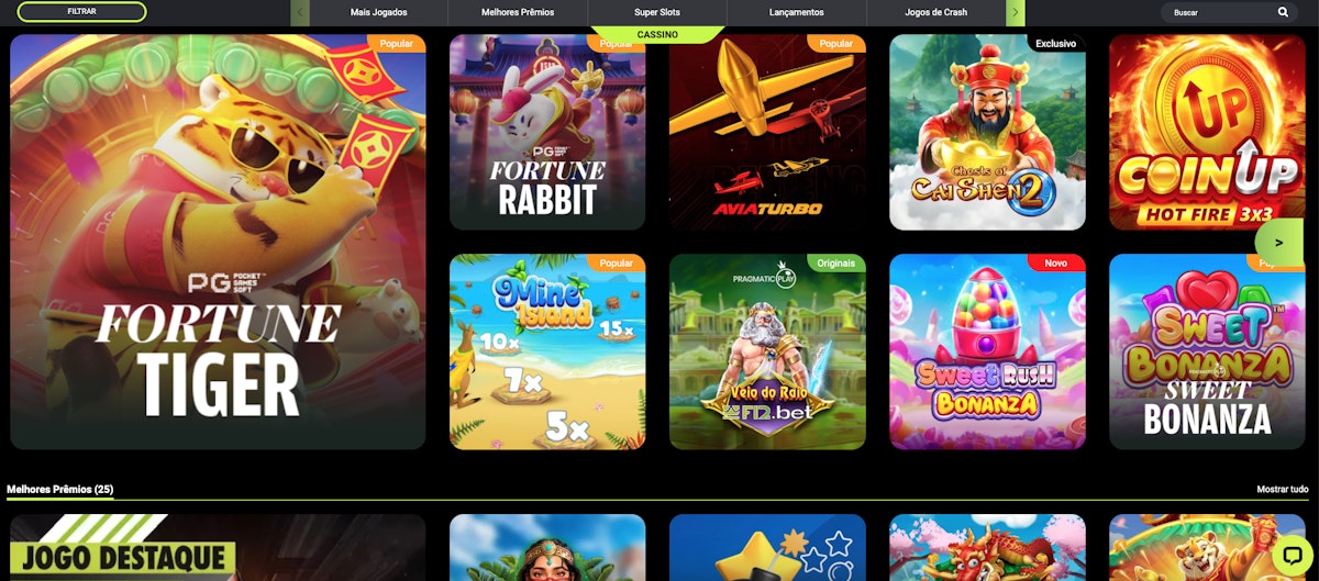 A F12.bet é uma casa de apostas completa e sem dúvidas uma das mais renomadas no Brasil! Ela oferece os melhores jogos de cassino, incluindo Fortune Tiger e outros jogos de slots semelhantes além de diversos outros jogos da categoria crash, cassino ao vivo entre outros.